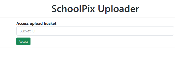 From this page, you can manually enter your bucket ID. Your school’s unique ID is a complex 32-character string, so if you would prefer to access your upload folder via the link, please contact us for assistance.
