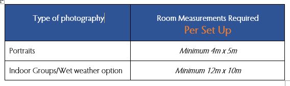 - Please ensure that the rooms have sufficient space for classes to wait nearby, minimising distractions for the students being photographed and the rest of the school.